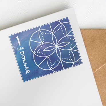 Add a contemporary touch to packages and large mailings with the $1 Floral Geometry stamp from the U.S. Postal